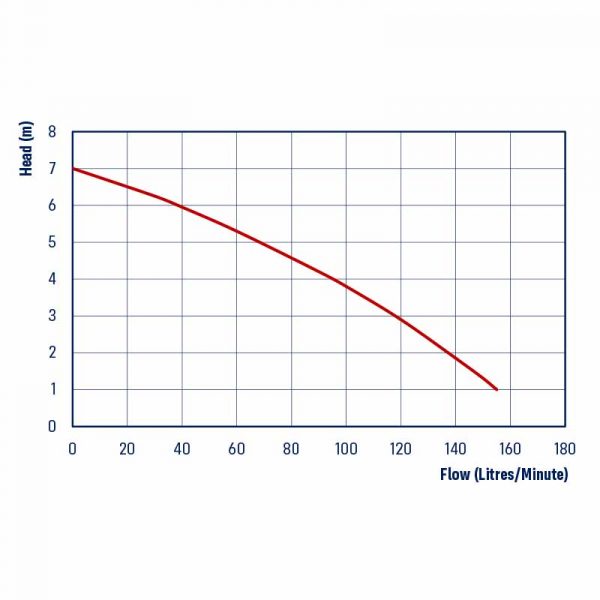 | MAXIMUM FLOW | 155 L/min | MAXIMUM HEAD | 7m |